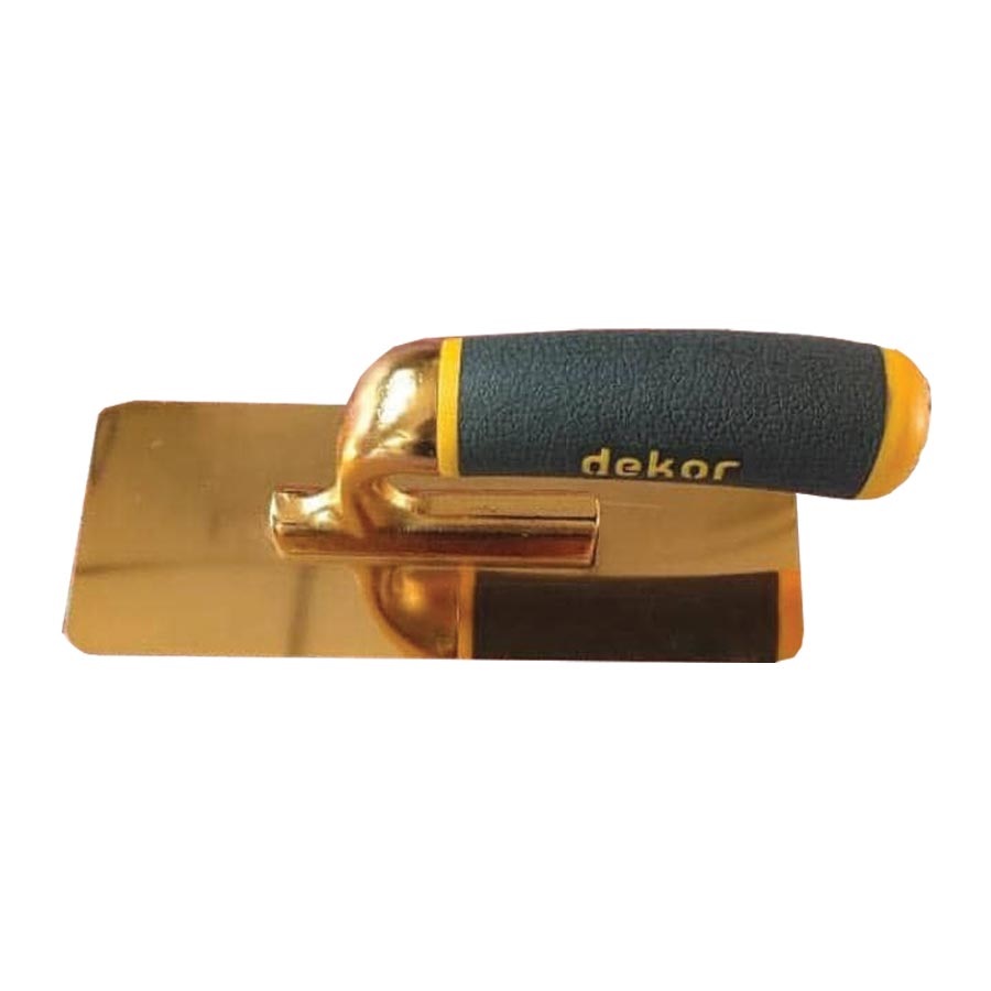 ماله استیل طلایی دکور کد 2226 ساخت کشور ترکیه با تیغه ای از جنس استیل ضد زنگ با پوشش طلایی و دسته ای از جنس پلاستیک فشرده مقاوم ابزاری حرفه‌ای و باکیفیت برای اجرای کارهای پتینه، دکوراتیو، گچ‌کاری و بنایی است. این ماله با طراحی منحصر‌به‌فرد و سطح استیل ضد زنگ، اجرای دقیق و صاف رنگ و مواد دکوراتیو را تضمین می‌کند و جلوه‌ای لوکس و شیک به پروژه‌های ساختمانی و هنری شما می‌بخشد و می توان از ماله استیل گلد 2226 در کارهای پتینه، دکوراتیو، گچ‌کاری، بنایی و اجرای رنگ و مواد تزئینی استفاده نمود.